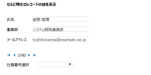 レコードナビゲーション型セルを使用し、カレントレコードを移動できるようにします。