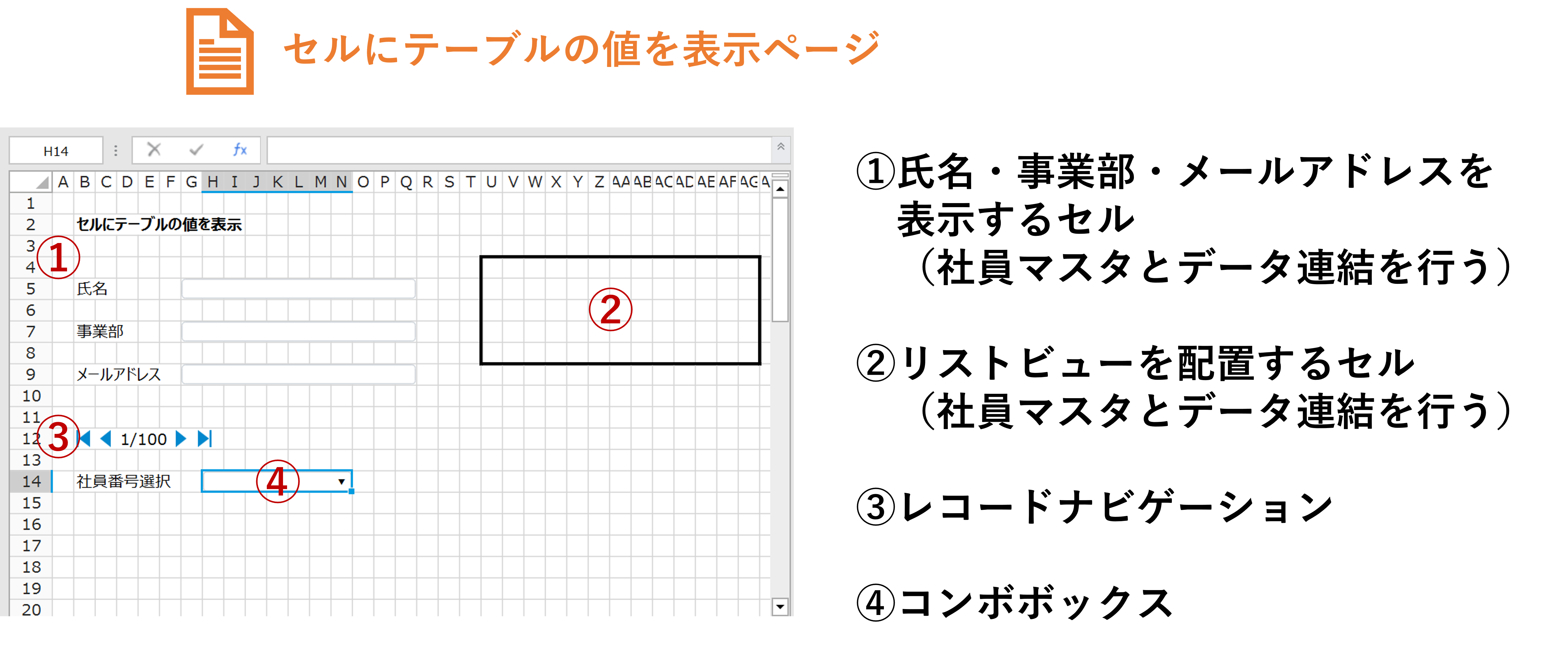 そのうち、今回使用するページは「セルに特定のレコードの値を表示」です。