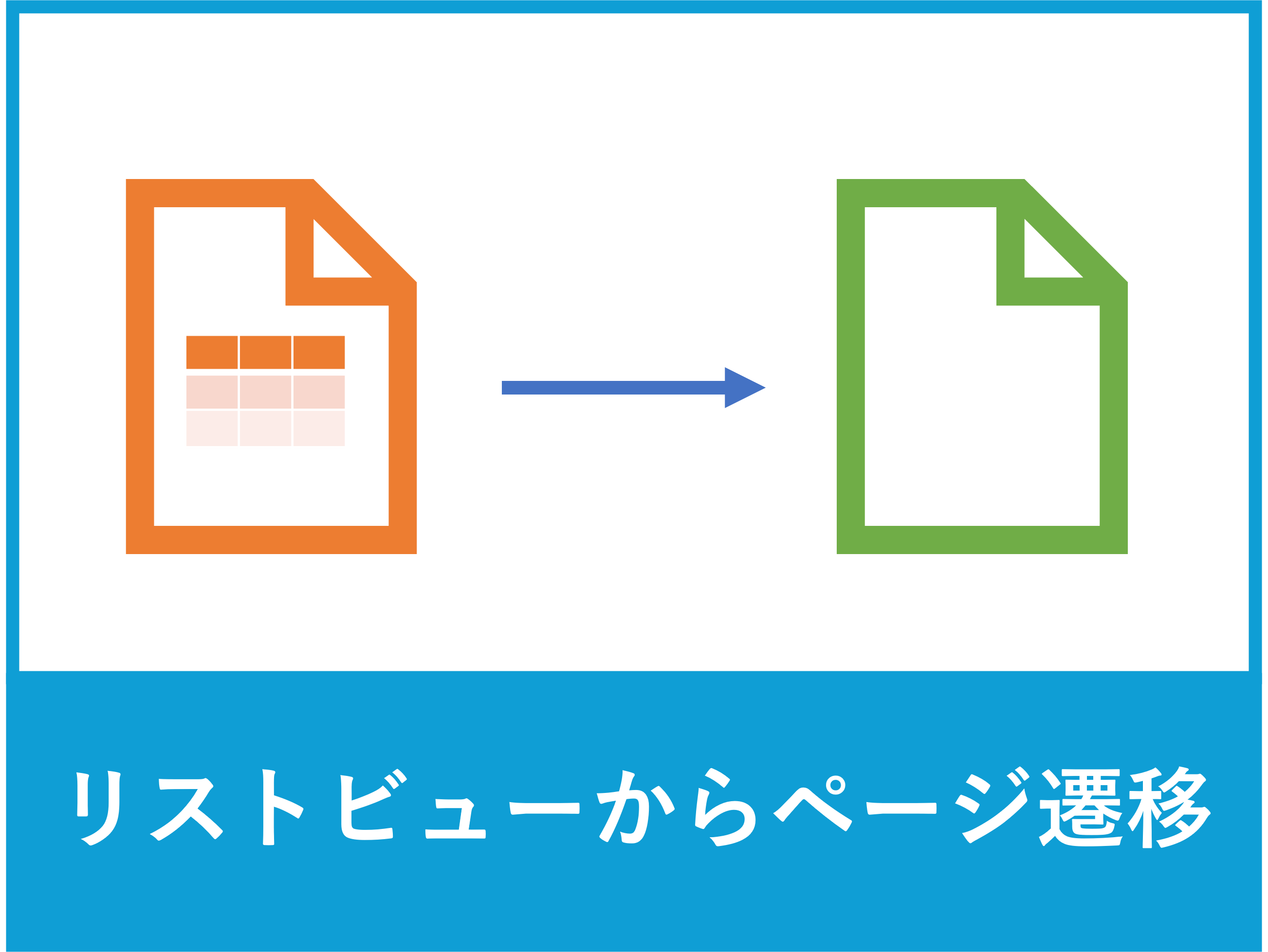 一覧画面で選択したデータをもとに、別の画面へ遷移して内容を編集する方法を解説しています。